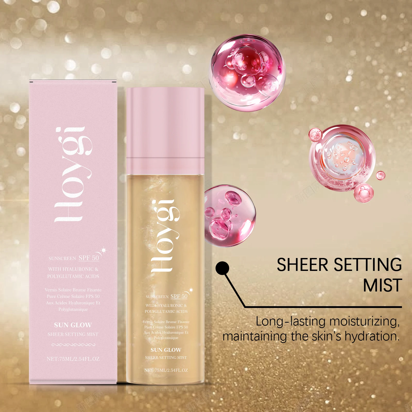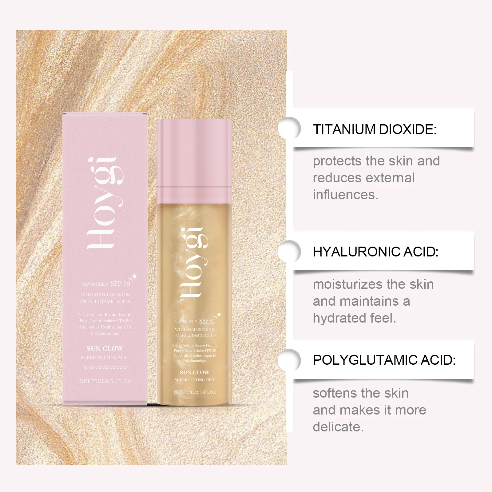 Hoygi 75ML SPF 50 Sheer Setting Mist Hydrating Glow Mist with Shimmering Oil Reef Safe for Face Body Non Greasy Fast Absorbing